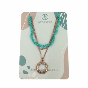 Gemma Simone Circulus Necklace Layered Aqua Beads Goldtone Sun Charm