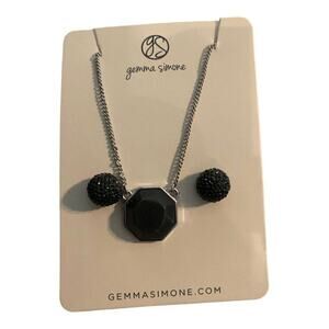 Complete your outfit with this stunning Gemma Simone necklace and earrings set. The black color of the necklace and earrings is perfect for any occasion and adds a touch of elegance to any outfit. The chain style and charm design add a unique and fashionable touch to the set.