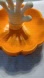Orange jack o lantern candy bowl, white hand moves when you reach in for candy also motion activated, giggles and says " Boo" " Did I Scare You" "Trick or Treat" " Happy Halloween". Watch video.