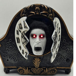 Gemmy Face Out Clock Halloween Screaming, Light Up Moving Tabletop