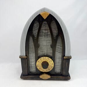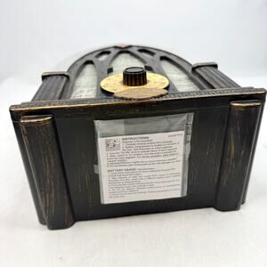Gemmy plastic Halloween radio decoration with working lights & sounds. Plays funny Halloween themed radio ads when you turn the dial or can be set up to be motion activated. Batteries not included.
