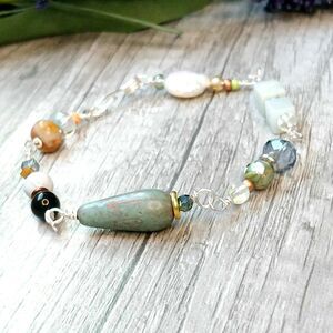 Elevate your style with this stunning assorted gemstone beaded bracelet! Featuring a mix of gemstones, glass, clay, and metal beads, these boho statement chic bracelets are perfect for adding a touch of elegance to any outfit.
