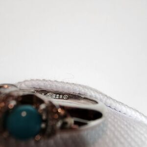 Gemstone Diamond Cut Three Stone Ring Sterling Silver Turquoise Size 5