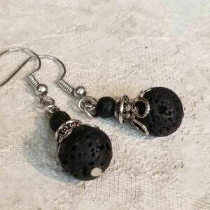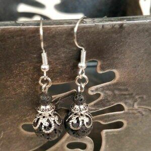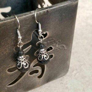 Gemstone Earrings Lacy Silver Black Lava