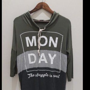 Gemstone Monday the Struggle is Real Hoodie Pullover Lace Up, 3/4 Comfy Flowy