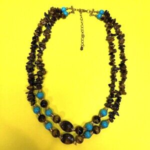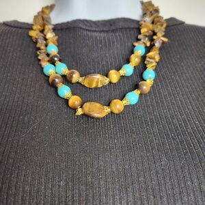 Tiger's Eye & Turquoise Dyed Howlite Beaded Necklace