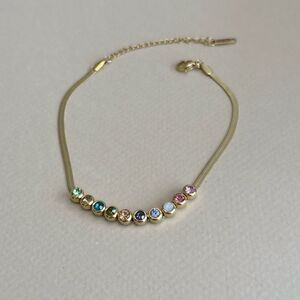 This elegant gold anklet features a stunning array of multicolored stones, perfect for adding a touch of sophistication to any outfit