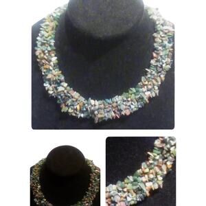 Vintage heavy necklace with Raw multi stones. Beautiful statement piece. Gorgeous colors to match many outfits!