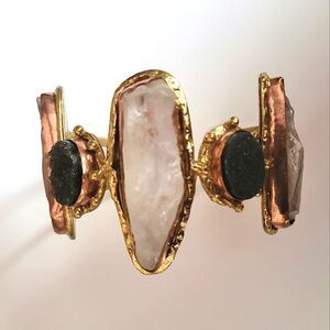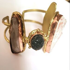 Like New! Gemstone Brass and Copper Statement Cuff Bracelet