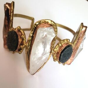 This beauty is from my personal jewelry collection. It's handcrafted in India, made of brass and copper with quartz crystals and 2 Druzy stones. I picked this up during my travels, in quant Seattle boutique. I'm sad to see it go!
