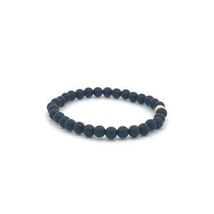 Gemstones Matte Onyx 4mm Stretchable Bracelet 14k Gold Corrugated Bead Charm