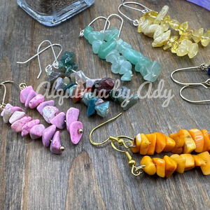 Gemstones colorful dangle bar bohemian earrings/handmade/healing crystals