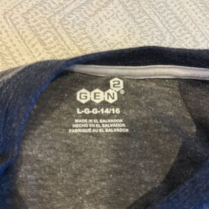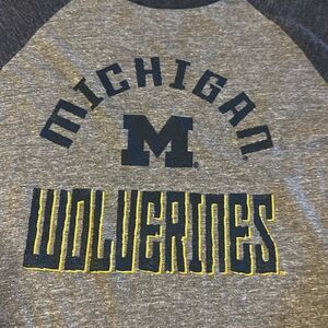 Gen2 Boys Grey & Navy Blue University of Michigan Raglan Long-sleeve. Split sides at the bottom. Barely worn. 17” pit to pit and 25” shoulder to front hem. Size L(14/16).