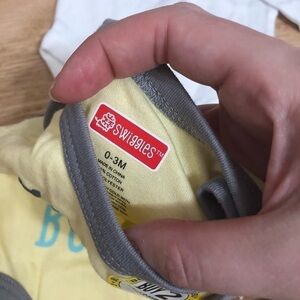 Cute as a button yellow gray onesie NWT Brand New Swiggles Brand