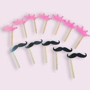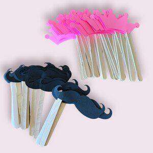 Gender Reveal Sticks Team Boy Mustaches and Team Girl Crowns for Voting Games and Party photos - handmade but no longer need. GUC
