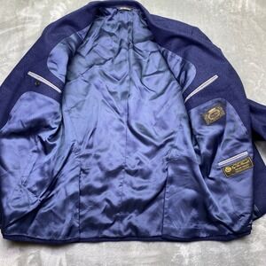 Gene Hiller Loro Piana Canada Wool Blazer Men Sz 42S Blue Herringbone Sport Coat
