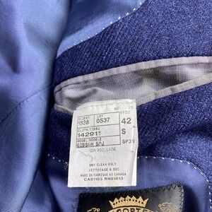 Keywords: wool blazer, herringbone blazer, mens sport coat, made in canada blazer, blue blazer, small blazer, classic blazer, two button blazer, business casual blazer, tailored blazer, wool coat, formal blazer, Loro Piana