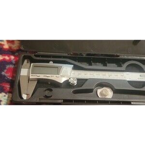 General Tools & Instruments, Hi-Tech Digital Fractional Caliper Measuring Tool in Stainless Steel, with a large LCD Display, & comes in a Hard Case for storing and protecting.