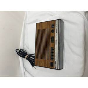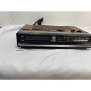 The General Electric GE Digital FM/AM Clock Radio with Alarm, Model 7-4624, is a vintage collectible piece from 1983 with a retro design. This clock radio features a digital display, quartz movement, and alarm function. Made of plastic with a walnut finish, it has a rectangular shape and measures 9 inches in length, 5 inches in width, and 2 inches in height. This original unit, with a weight of 1.10 lbs, is a perfect addition to any decor for those who appreciate the nostalgia of late 20th-century electronics.