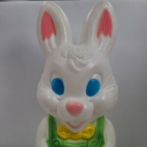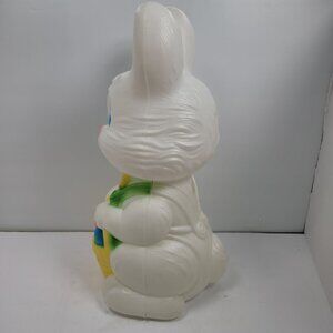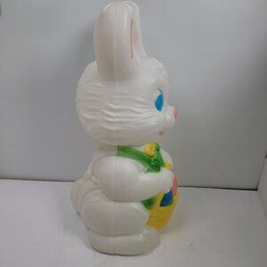 This charming vintage Easter bunny blow mold by General Foam Plastics adds festive cheer to any space. Its vibrant colors and light-up feature create a warm and inviting atmosphere, perfect for seasonal celebrations. Designed with an adorable basket of eggs, this piece is ideal for collectors and holiday enthusiasts.