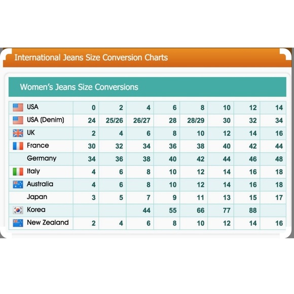 Note: These size charts are meant to be a general starting point and is not brand-driven. Please always check your favorite brand's size chart before purchasing jeans online.