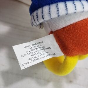 This charming plush toy is a must-have for any cereal advertising collector. Made in China in 1998, it features the iconic Sonny Cuckoo Bird from General Mills' Breakfast Pals campaign. The multi-colored toy stands at 9 inches tall, and is in its original form, perfect for those who appreciate authentic vintage pieces. Add this to your collection today!