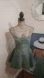 This mini flare dress has a vintage wash stretch denim construction, corset-inspired seam details, adjustable shoulder straps, a frayed hemline, and a back zip closure.