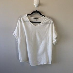 Generation Linen Blend Blouse White Cream Short Ruffle Sleeve V Neck XS/S NWOT's