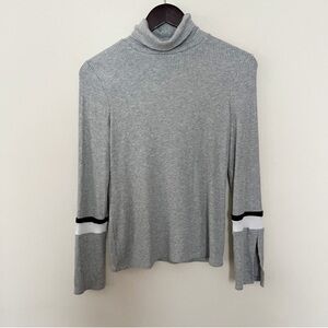 Brand new. Heather gray, black, white. Turtleneck top. Long sleeves. Ribbed knit. Slits on sleeve hem. Fitted top.