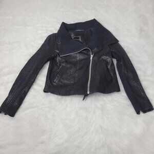 Generation Love Black Leather Reptile Textured Moto Jacket Small
