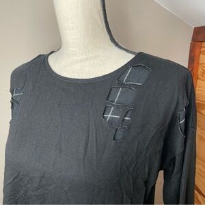 Generation Love Black Ripped Cutout Plaid Wool Silk Blend Sweater Extra Small