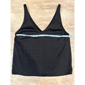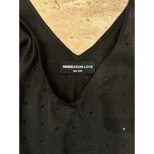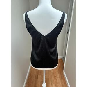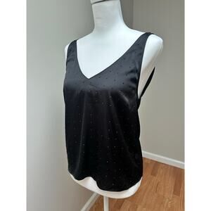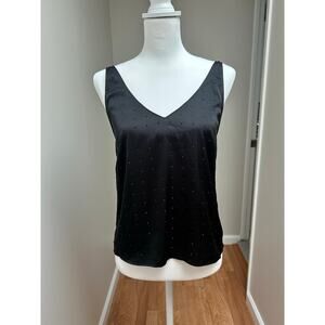A fashion favorite gets a romantic makeover. A silky sheen polyester charmeuse with black studs line this staple tank. Pair with a denim skirt and soft cardigan to bring some ethereal vibes to your casual style.