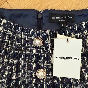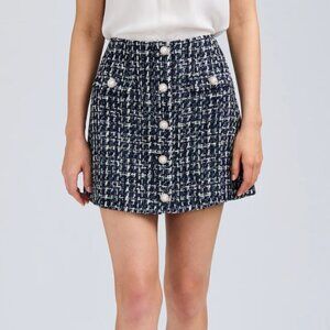 A sophisticated fusion of timeless tweed and modern Lurex metallic sparkle, this A-line miniskirt with faux pearl buttons is the perfect update to your spring wardrobe. Versatile and chic, it pairs effortlessly with everything from tailored blouses to casual tees. Generation Love tweed is crafted with recycled fabric, imported from Italy.