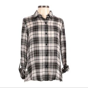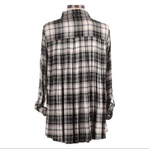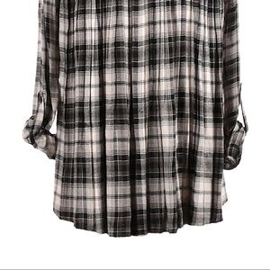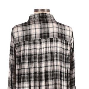 Generation Love Calvin Black Plaid Button Down Shirt XS Oversized Pleated Back