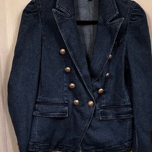 Generation Love Denim Blazer Double Breasted Collared Blue Size Large Gold Tone