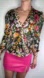 Elegant blouse with floral and leopard patterns. Features vibrant colors and a chic design.