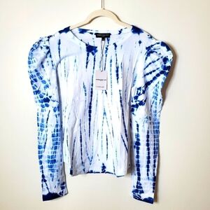 Size M NWT Josephine Indigo long sleeve top from Generation Love featuring a puff sleeve and a fun tie die pattern throughout.