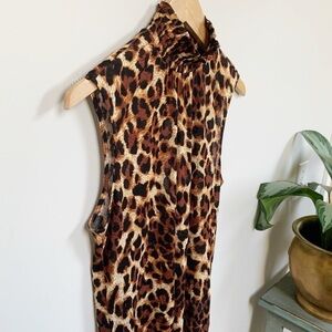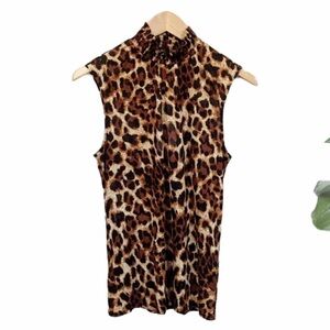 Lightweight, stretchy viscose leopard print Lacey Mock Neck blouse by Generation Love New York. Pullover style; sleeveless; mock neck. New with tags.