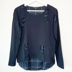 Super cool top by Generation Love. Layered in front only. Black distressed over a black and white window pane plaid print. Longer in front than back. Super soft and slightly oversized. Great go to piece! All measurements are approximate and taken flat.