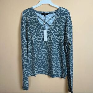 Generation Love Leopard Langley Criss Cross Waffle Knit Ribbed L/S Size Medium