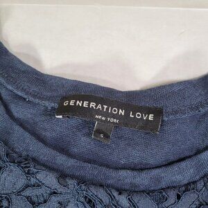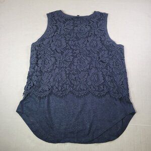 Generation Love Navy Blue Linen Blend Sleeveless Lace Overlay Top Size S
