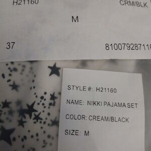 Generation Love Nikki Printed Pajama Set Cream/Black Medium NWT