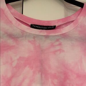 Generation Love Pink Tie Dye Puff Sleeve T-Shirt. Curved bottom. Crewneck. Made of cotton & polyester. NWT.