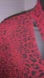 Vibrant red leopard print ruffle dress featuring tie at collar, long sleeves, scoop neck and a fitted waist.