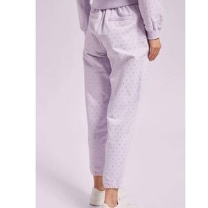 Stay stylish and comfortable with these lavender polka dot jogger pants. Perfect for casual outings or lounging at home.