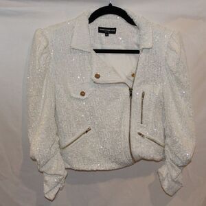 Generation Love Robin Sequined Moto Jacket Zip Up Long White XS $395