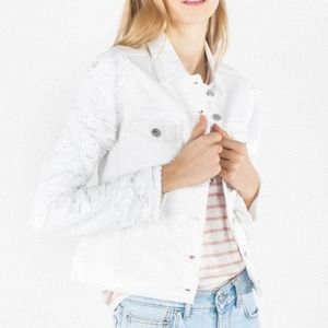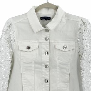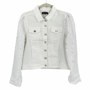 Step into a blend of casual and glamour with this Generation Love denim jacket. The sequin-adorned sleeves make a dazzling statement, while the classic white denim offers versatility for any outfit.