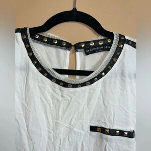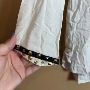 Generation Love White Semi-Sheer Gold Metal Rivets Long Sleeve Blouse Medium
