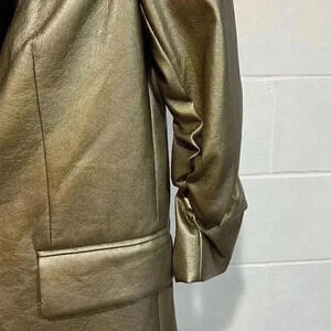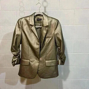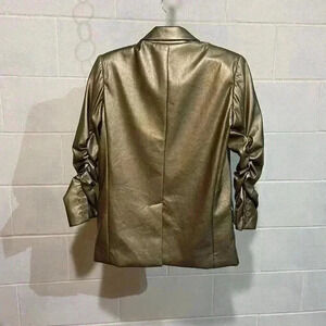 Generation Love Women Fabien Satin Blazer 3 Gold Ruched Sleeve One Button Party