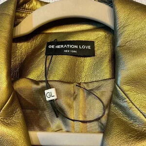 * Generation Love "Fabien" satin blazer. Peak lapels; open front. Three-quarter sleeves. Chest welt pocket. Side welt pockets. Relaxed fit. Polyester. Imported.Ships from a smoke free home and pet free home.